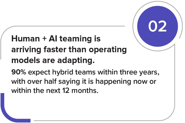 Hybrid Human + AI teaming is arriving quickly, but most enterprises are still treating AI as an add-on, not redesigning workflows for shared ownership, not embedding context, and not strengthening governance fast enough to keep pace.