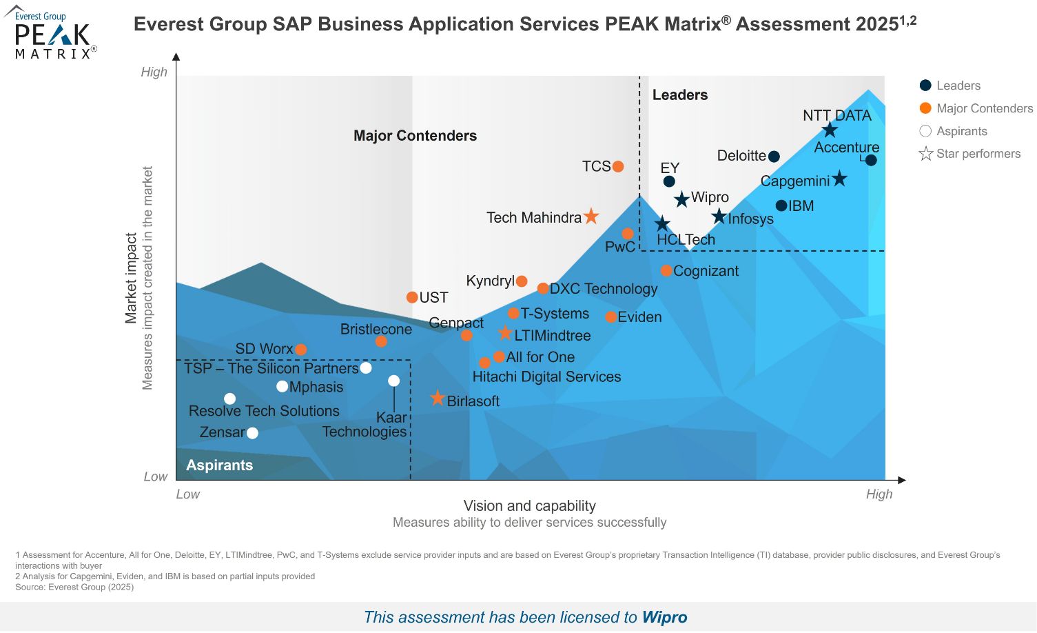 Wipro has been recognized as a Leader and Star Performer in Everest Group’s SAP Business Application Services PEAK Matrix® Assessment 2025. In this global assessment, Everest Group reviewed 30 leading SAP Business Application services providers and found Wipro to be among the leaders in the industry.