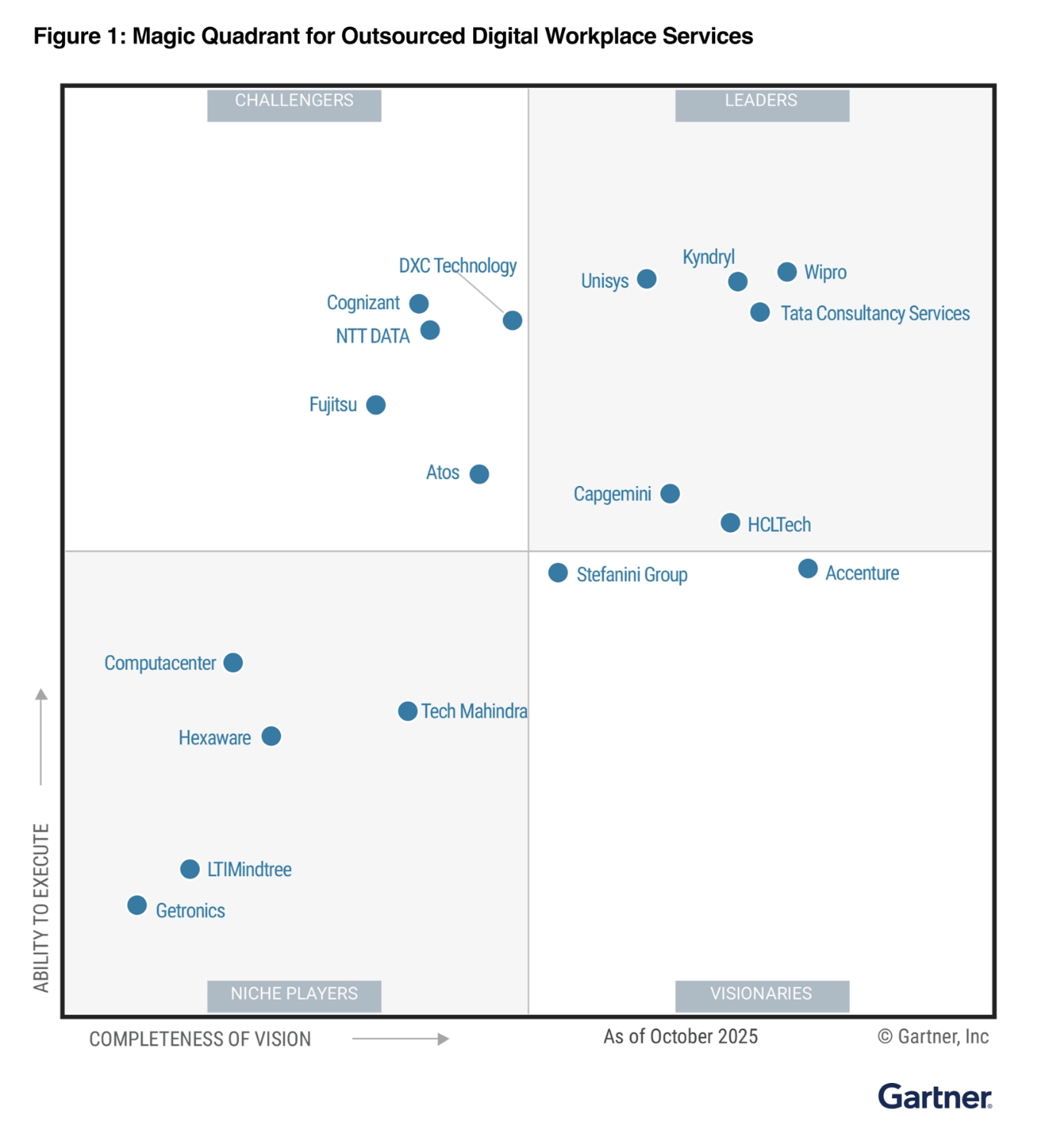 In this report, Wipro has been positioned as a Leader in the 2025 Gartner® Magic Quadrant™ for Outsourced Digital Workplace Services. This report assesses the ability to execute and completeness of vision of ODWS providers, and offers support required for informed decisions on how organizations spend digital workplace services budgets. “It can also help CPOs; CIOs; sourcing, procurement and vendor management leaders; and infrastructure and operations leaders who are selecting a provider for midrange to long-term ODWS contracts that support critical functions and business objectives with appropriate regional capabilities.”