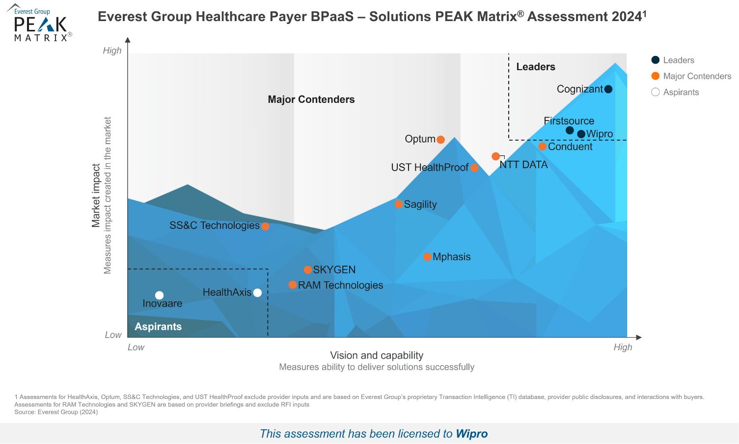 "Healthcare payers continue to face the challenge of keeping up with the rapid pace of CMS guideline changes, while ensuring their operations remain compliant and effective," says Vivek Kumar, Practice Director at Everest Group. "Wipro's investments in regulatory innovation and compliance, such as the MPPP360 solution, alongside its focus on member experience-led BPaaS, demonstrates its commitment to helping payers navigate these complexities. Further, its partnerships with core administrative platform vendors and its dedicated solutions for emerging markets, such as ACA through its Integrated Links Platform, have positioned it as a Leader on Everest Group’s Healthcare Payer BPaaS Solutions PEAK Matrix® Assessment 2024."