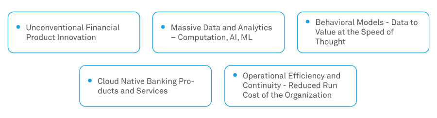 Cloud helps in laying the computation and operating model foundation for the new digital business model. Embracing the evolution of application design, behavioral profiling and significant rise of AI-fused process and products, cloud ecosystem helps to tame the increased demand for specialized ML IaaS and PaaS platforms. Technology and data platforms, founded by a well-defined cloud strategy, that follows innovative platform OpEx models and is digitally scalable and elastic, will reimagine the financial institutions’ success in the future.