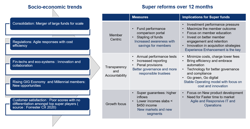 Regulatory reforms offer a great opportunity for superfunds to review their strategic priorities and create a more efficient, experience-driven, profitable fund. Adopting human-centric experience as a strategic priority can catalyze the above transformation, and tech-driven operational models can elevate user experience while streamlining processes. Strategic changes like these can help develop powerful capabilities that make it easier to respond and adapt to change.