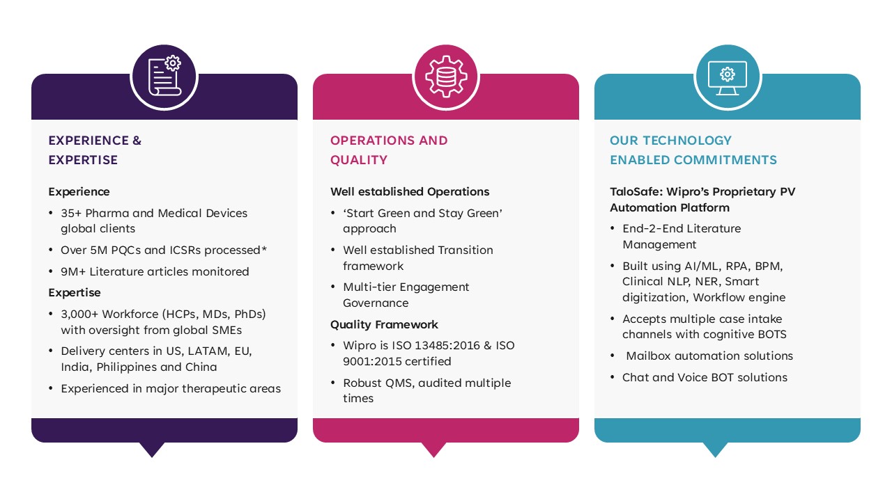 Driven by our unwavering commitment to excellence and innovation, Wipro stands as the best-in-class partner for Pharmacovigilance, dedicated to delivering transformative solutions that ensure unparalleled patient safety outcomes.
