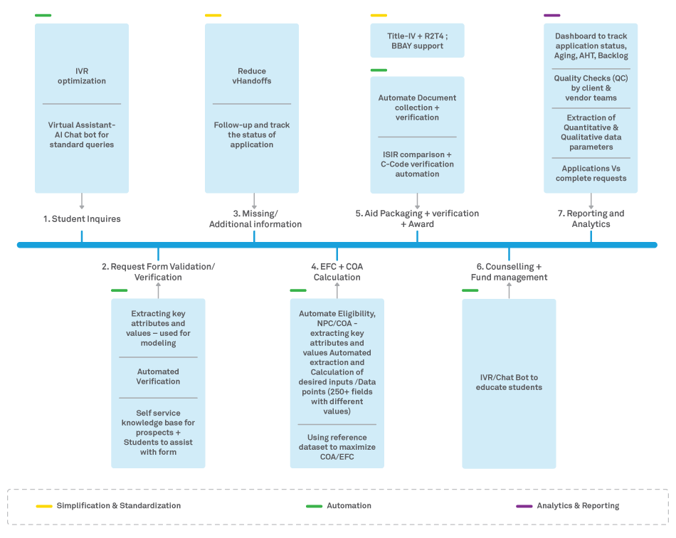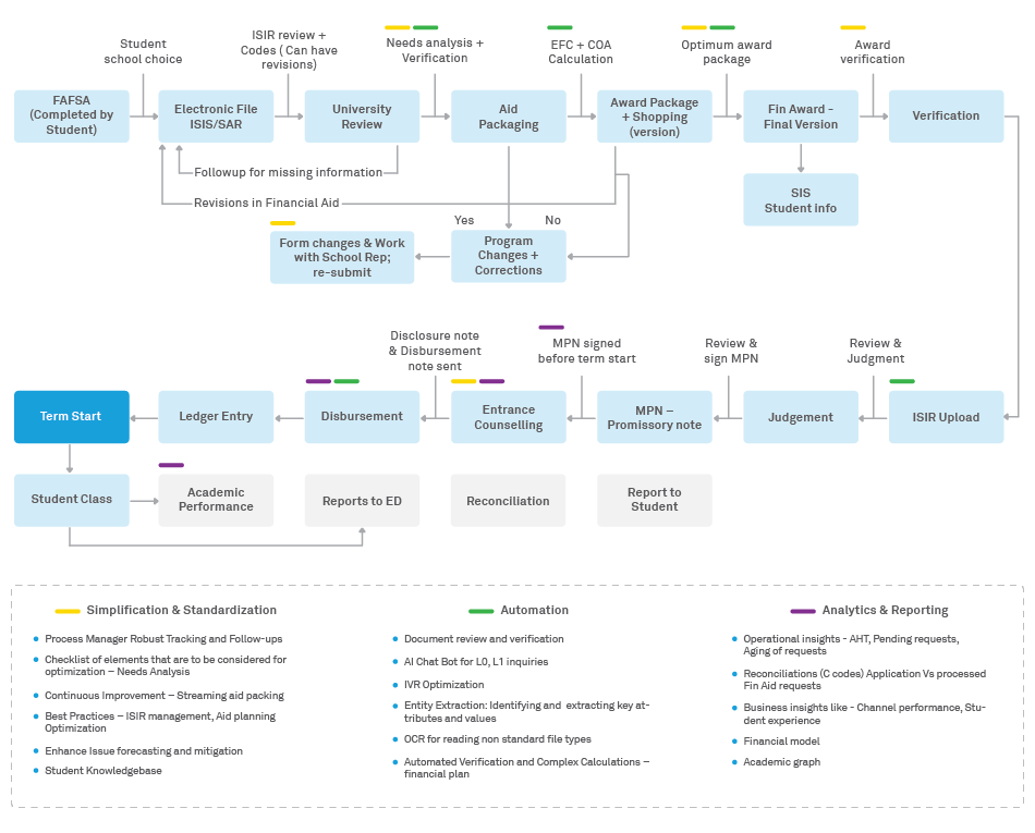 Below is a pictorial representation of a high-level financial aid process and an approach to bring the right interventions to redesign and enhance the process.