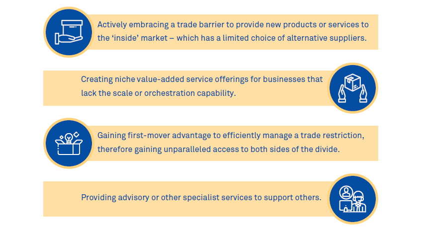 Opportunity: In times of trade restrictions, businesses can leverage information-brokering capabilities to manage and optimise higher complexity information flows and new legal barriers more quickly than the competition.