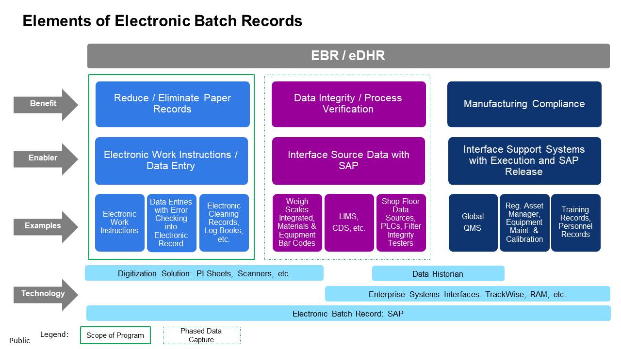 Key enablers of EBR/eDHR for each benefit area and specific examples of improvements that will be realized when manufacturing execution and data capture moves from manual/paper based to automated/electronic are depicted in figure 1.