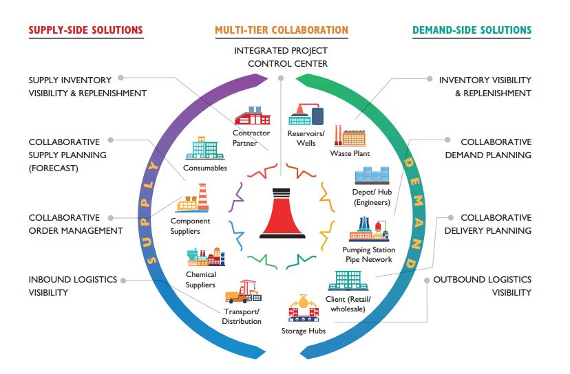A cloud-based supply chain collaboration platform can transform their fragmented and disconnected supply chains into a vibrant interconnected digital water value chain. Today’s leading edge collaboration platforms allow this level of connectivity regardless of the variety of systems, messaging standards or IT maturity of the trading partners in the supply chain.