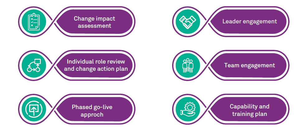 Capability and training plan: This ensured that they had the right resources to support the teams that were transitioning to the new system.