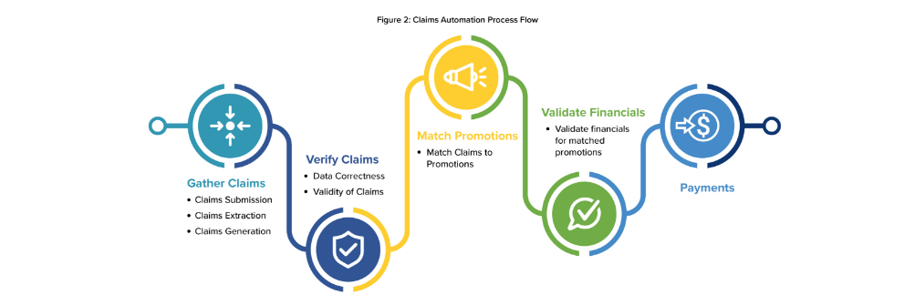 Processes, even complex ones like managing trade promotion claims and deductions, can be automated – and should be. As figure 2 illustrates, the process involves gathering claims, verifying them, matching them to promotions, validating financials and making payments back to retailers. Automation of this process demands a structured approach to each component (gathering claims, initial verification and validation, matching, validating with promotional and budget financials and final payments).
