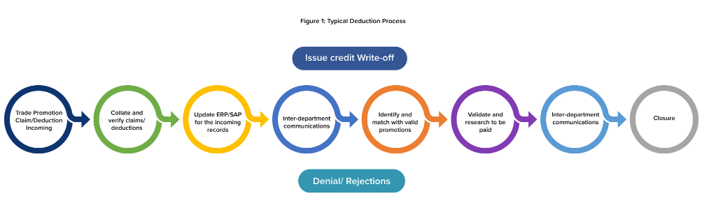 Typically, the process also involves multiple applications including promotion management, enterprise resource planning (ERP) and retailer claim and payment systems. For example, a typical claim settlement must undergo a variety of process challenges starting from claim receipt to closure. These steps include sourcing and recording valid deductions, matching and validating the deductions to promotions, payment regularization and correspondence and storage and backup.