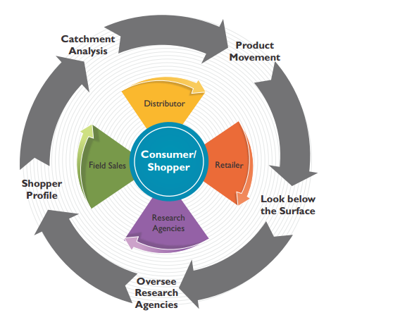 Today, emerging markets are vital for CG companies. But the inherent nature of emerging markets presents a set of challenges quite different Besides, teaming up on the gathering of insights is central to the CG company. The graphic below (Fig. 1) depicts the key elements of the insights gathering process. From those of developed markets. They are structurally distinct and need a different approach for tackling problems. This calls for strategies that are tailor-made for these regions. It is virtually impossible to make inroads into these markets, without a high degree of collaboration in the value chain.