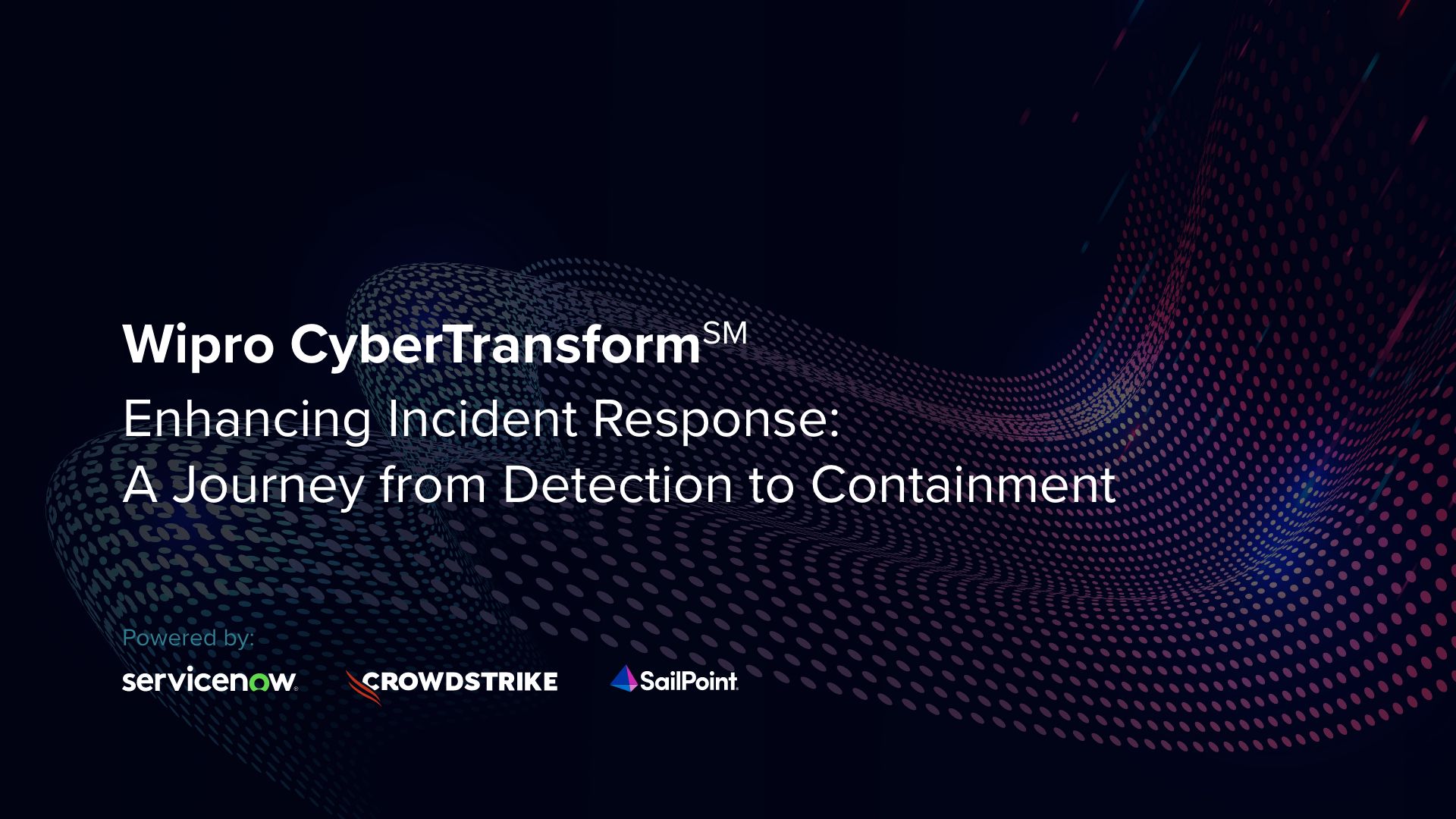 In this demo, Wipro CyberTransformSM powered by Wipro IntelligenceTM accelerates real-time incident response by unifying identity management, governance, and compliance workflows within ServiceNow. The solution enables: