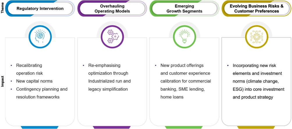 While the above themes are common across BFSI segments, their impact will be varied across banking, insurance, and superannuation sectors.