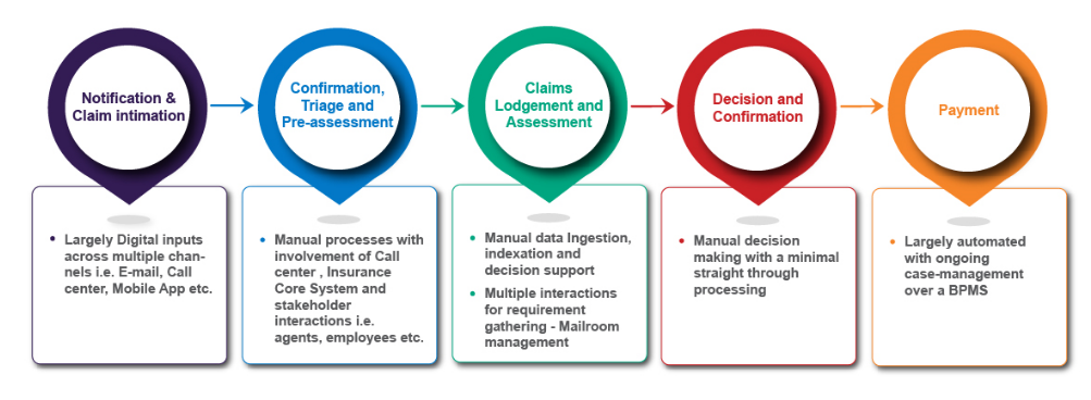 Currently adopted by most insurers, the claims management process (as depicted in Figure 1) involves a high degree of manual effort and increasing costs, resulting in delays and potential errors.