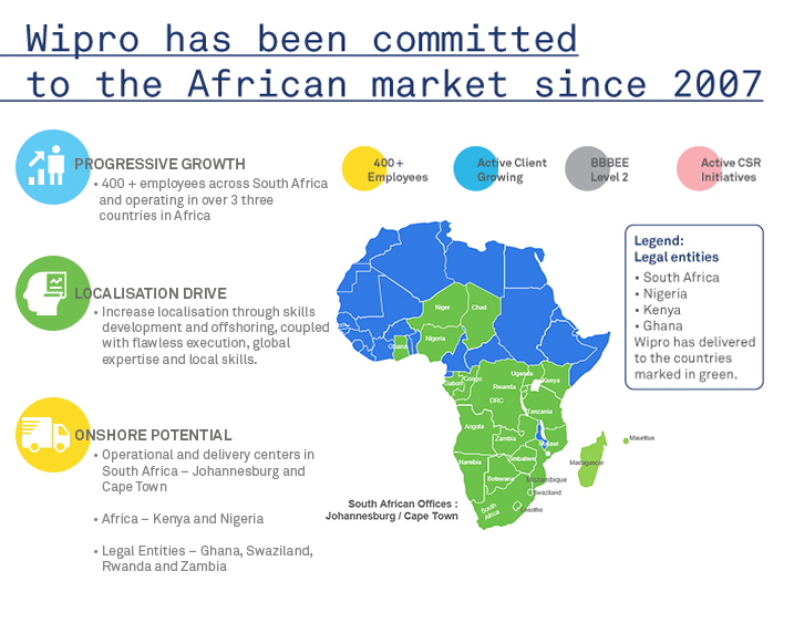 Wipro has been committed to the African market since 2007. We have more than 1,200 employees supporting Africa with over 55% local workforce, and a plan to expand our presence in Africa over the next two years.