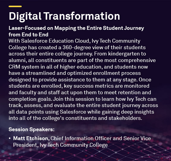 As a longtime partner of Salesforce, our goal is to drive higher ed institutions’ digital transformations by empowering them to get the most out of their Salesforce platforms and deliver seamless user experiences to students, staff, faculty, donors, and alumni.