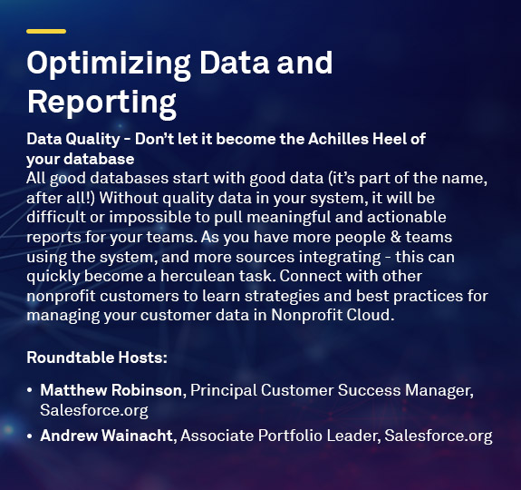 Salesforce enables nonprofits to use their data in a smarter way, make smarter decisions about their programs, and report on the effectiveness of their mission delivery. Real-time insights on donation opportunities allow nonprofits to focus on targeting the right profiles to foster long-lasting donor relationships, which in turn can help maximize involvement, retention, and ultimately lead to greater funding.