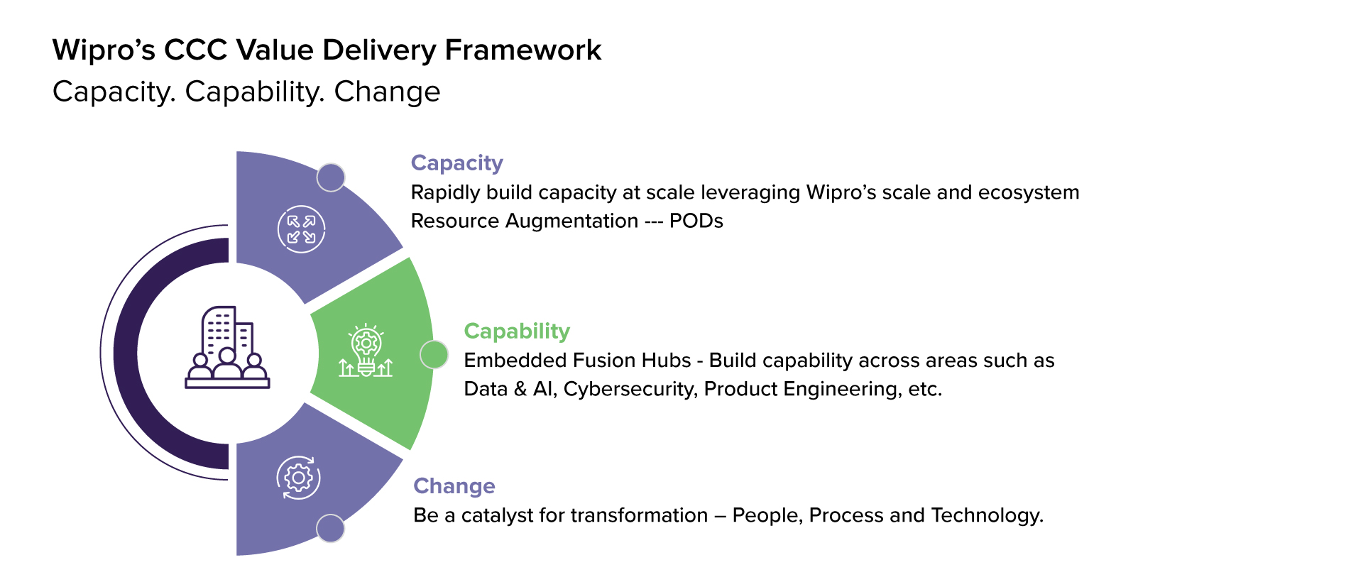 Wipro Fusion GCC framework is consulting‑led and AI‑powered, defining the GCC North Star for enterprises through Wipro Intelligence™- combining Wipro’s scale, efficiency, and ecosystem with each client’s culture and business proximity.