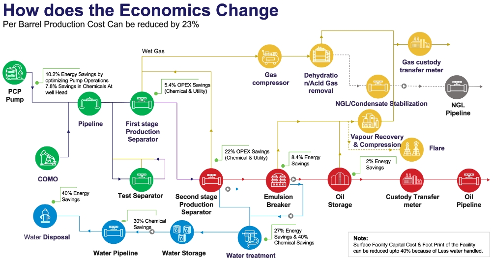 Even many inside the industry assume that the wastewater to crude oil (90% : 10%) ratio is fixed and cannot be improved. The fact is, making the overall operation more efficient reduces wastewater and brings down per-unit production costs by up to 23%.