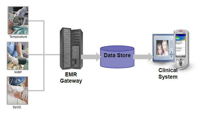 The EMRGateway solution would enable patient monitoring devices from different makes to talk to a single application running on a central server in the hospital environment and would communicate with various other hospital/healthcare applications which would use these data for better clinical results.