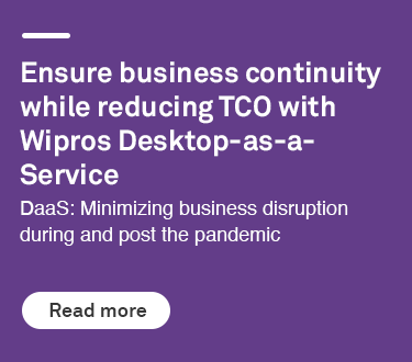 Amid these unprecedented circumstances, having a solution focused on continuity that enables remote work is crucial. Wipro’s VirtuaDesk™ Business Continuity Solution is designed to introduce desktop and application virtualization in a quick and cost-effective manner.