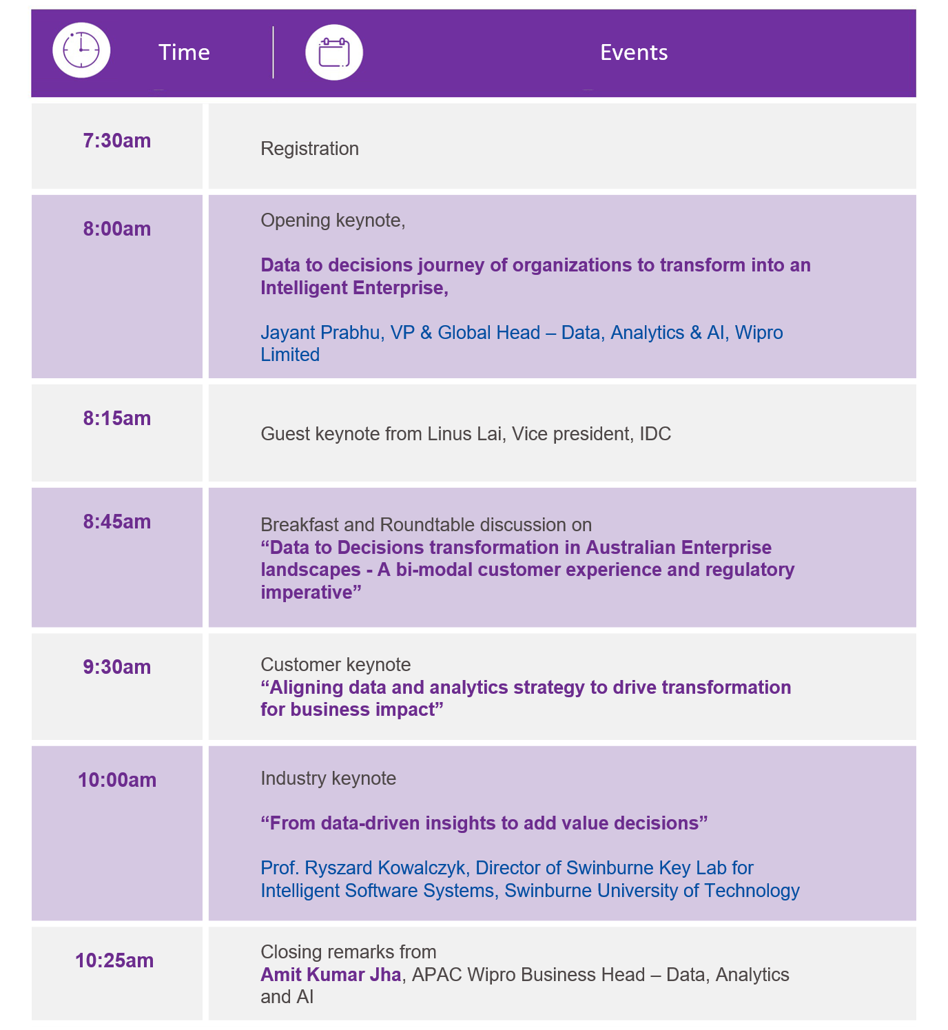 Wipro’s Data to Decisions Summit brings together technology experts, thought leaders, and business executives from across the world who have successfully leveraged data, analytics, and AI to their advantage.