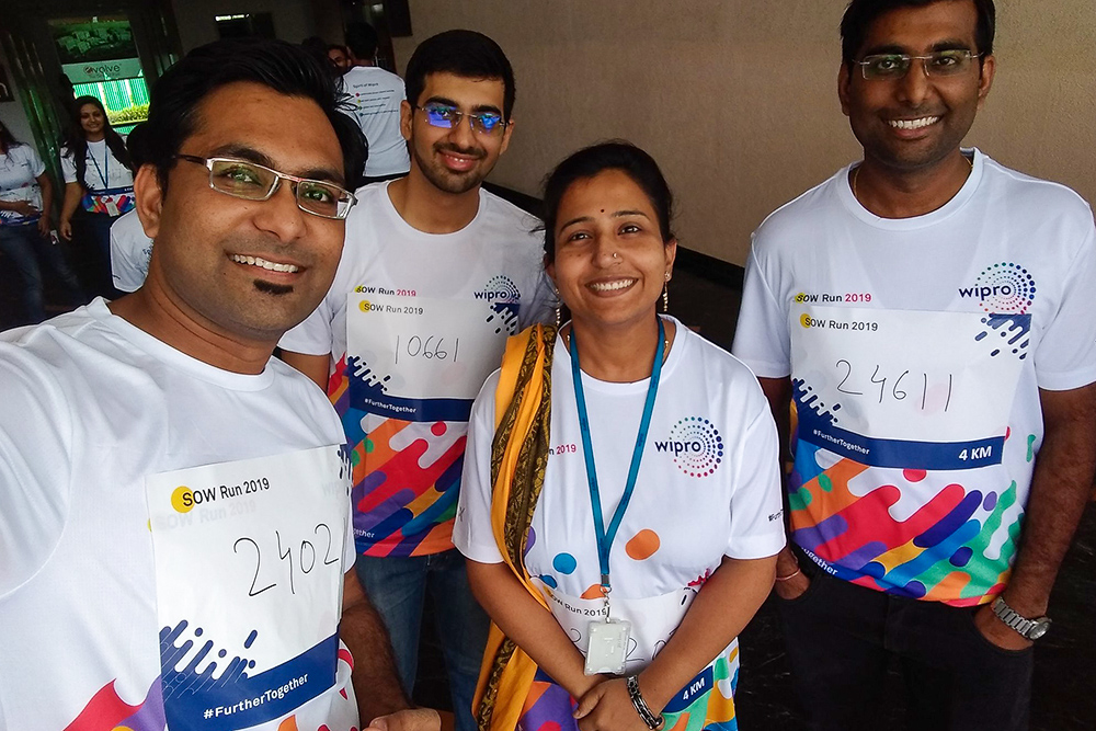 Each year, thousands of Wipro employees, their friends and families, alumni, customers, partners and suppliers come together for the Spirit of Wipro Run. An annual global initiative, this event champions and reinforces the core values of the organization: Be passionate about clients’ success, treat each person with respect, be global and responsible, and demonstrate unyielding integrity in everything we do.