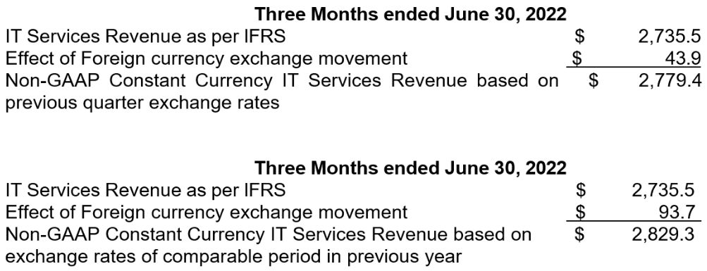 Reconciliation of Non-GAAP Constant Currency IT Services Revenue to IT Services Revenue as per IFRS ($Mn)