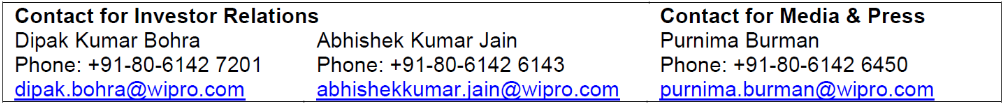 An audio recording of the management discussions and the question-and-answer session will be available online and will be accessible in the Investor Relations section of our website at www.wipro.com