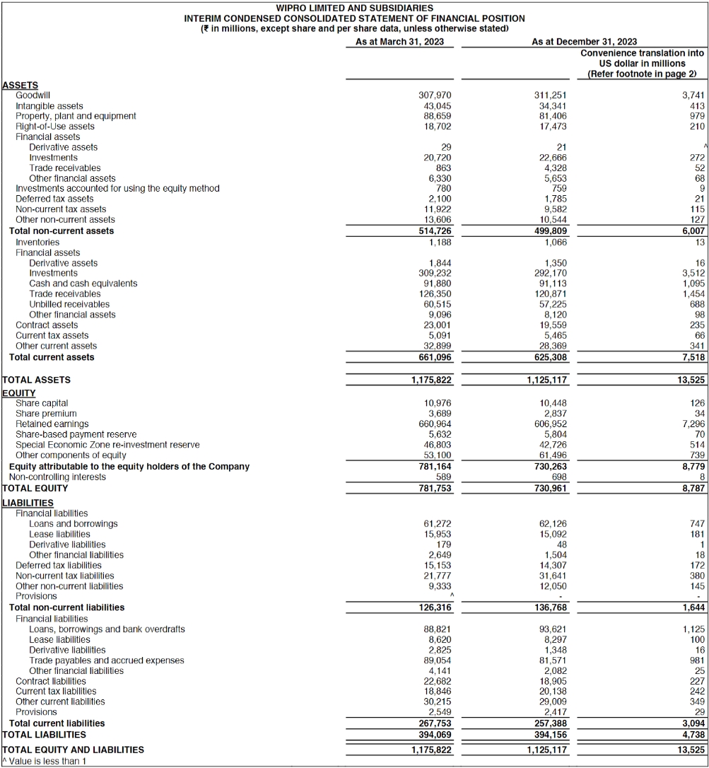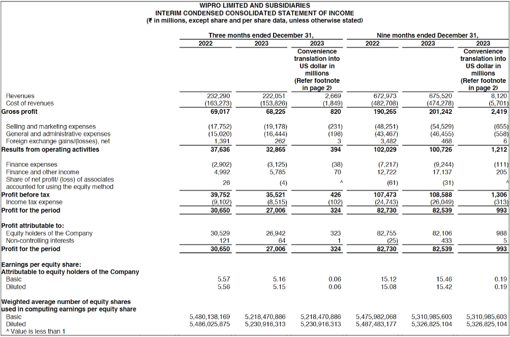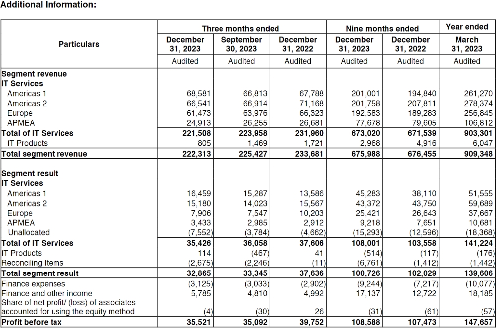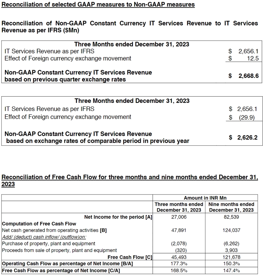 Results for the Quarter ended December 31, 2023, prepared under IFRS, along with individual business segment reports, are available in the Investors section of our website www.wipro.com/investors/