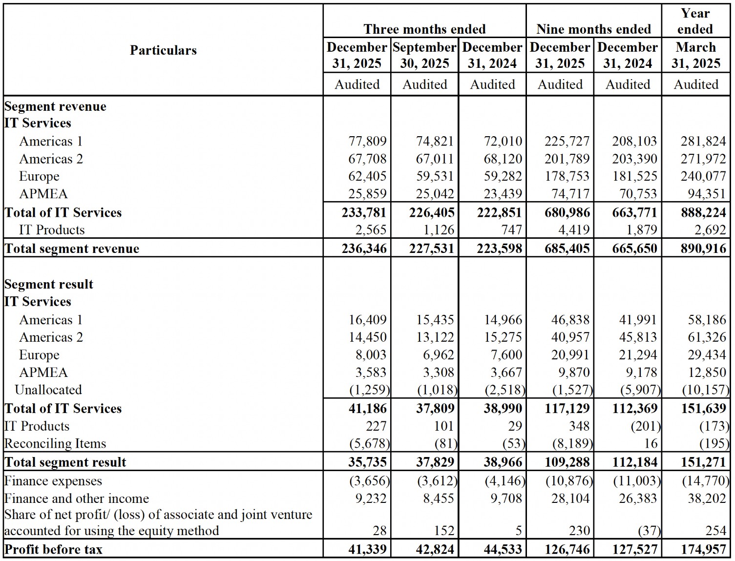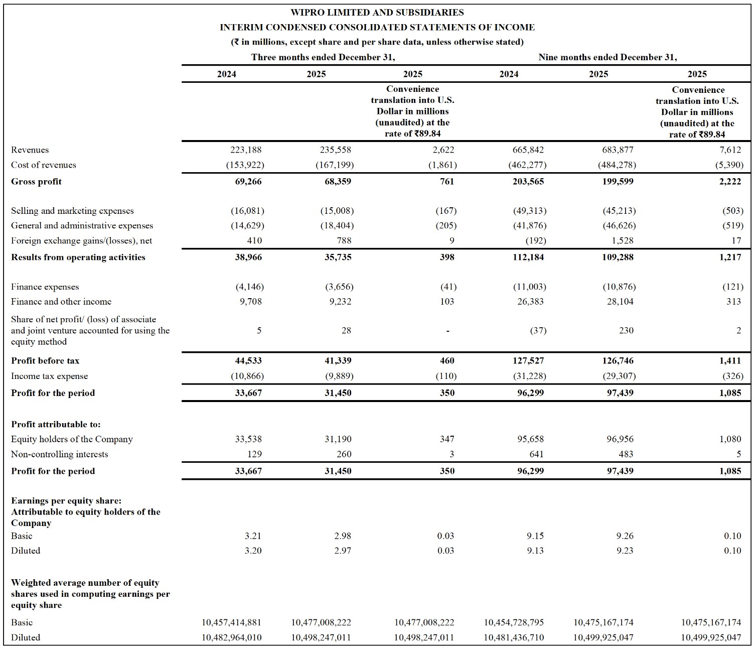 Results for the Quarter ended December 31, 2025, prepared under IFRS, along with individual business segment reports, are available in the Investors section of our website www.wipro.com/investors/