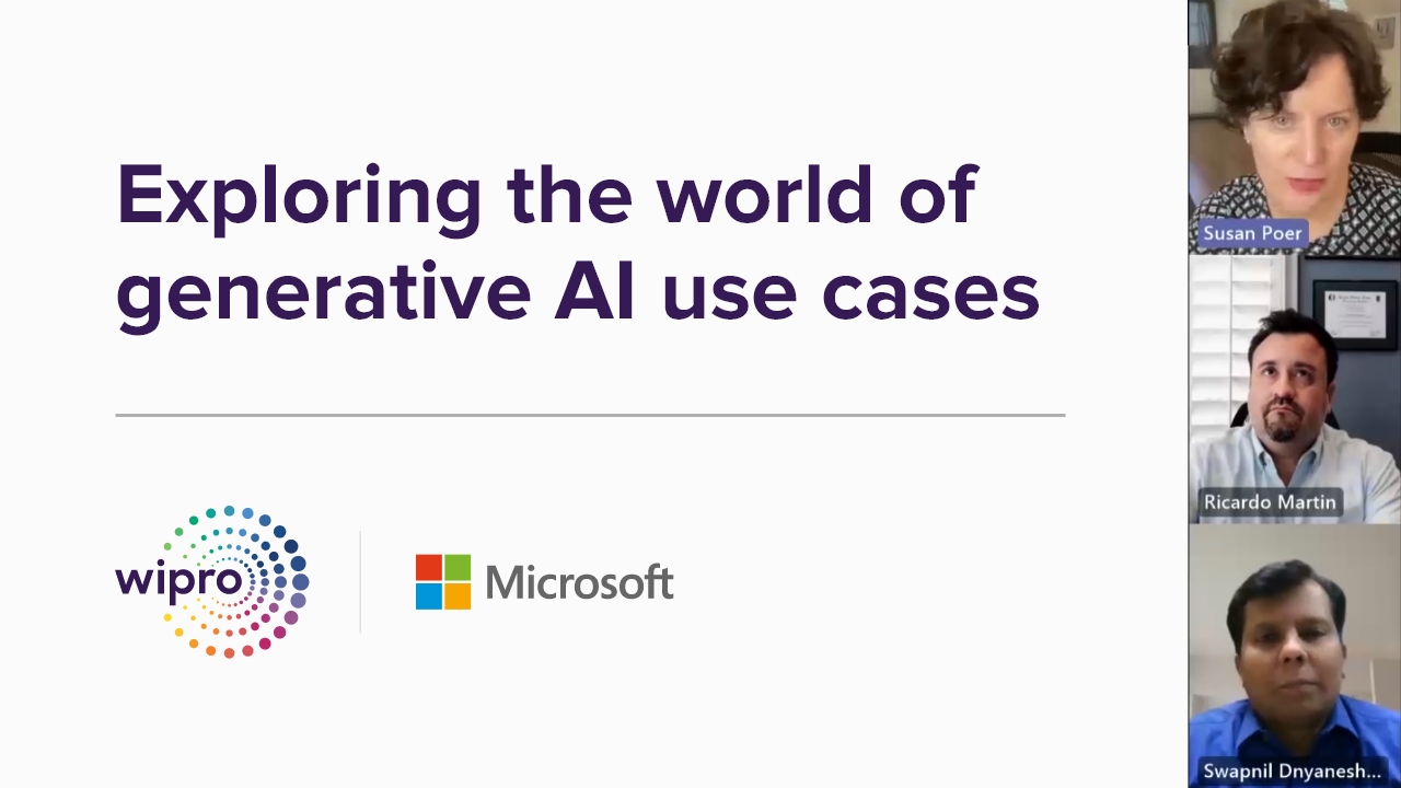 Check out this video where we, along with Microsoft, explore the exciting world of generative AI use cases possible with Wipro’s Generative AI framework on Azure OpenAI, showcasing examples of how OpenAI's models are being used in industries such as retail. We dive into the technical aspects of generative AI and discuss potential benefits and limitations, including the ethical considerations surrounding its use.