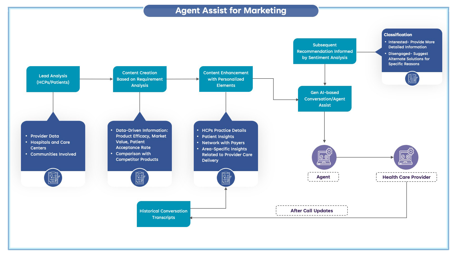 A key advancement in Gen AI for patient engagement is the ability to deliver highly personalized communication. AI-driven systems can analyze individual patient data to generate tailored messages and recommendations aligned with a person’s health status, preferences, and behavioral patterns. Patients benefit from timely, personalized reminders for medication adherence, dietary guidance, and motivational prompts that support treatment compliance and overall well-being.