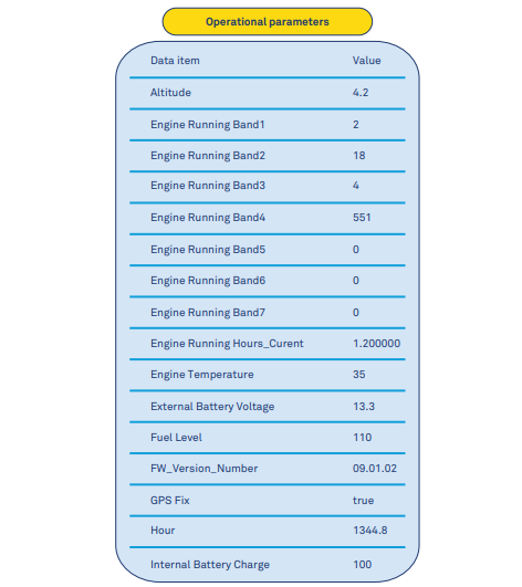 Let's dissect the diagram on Fig.4. It shows an excavator digging in a field, somewhere in the world. While it’s digging, its engine is running and the engine parameters have certain values, the battery has a certain voltage and the fuel level also keeps changing. The excavator has a certain state, characterized by specific values of various operational parameters at different points in time. A sampling of the operational parameter values at a given instant is shown in Fig.3. As these values are stored against the respective variables of the Digital Twin model as time series data, the state of the Logical excavator (the Digital Twin), at any point in time is exactly the same as that of the physical excavator. Literally a twin!